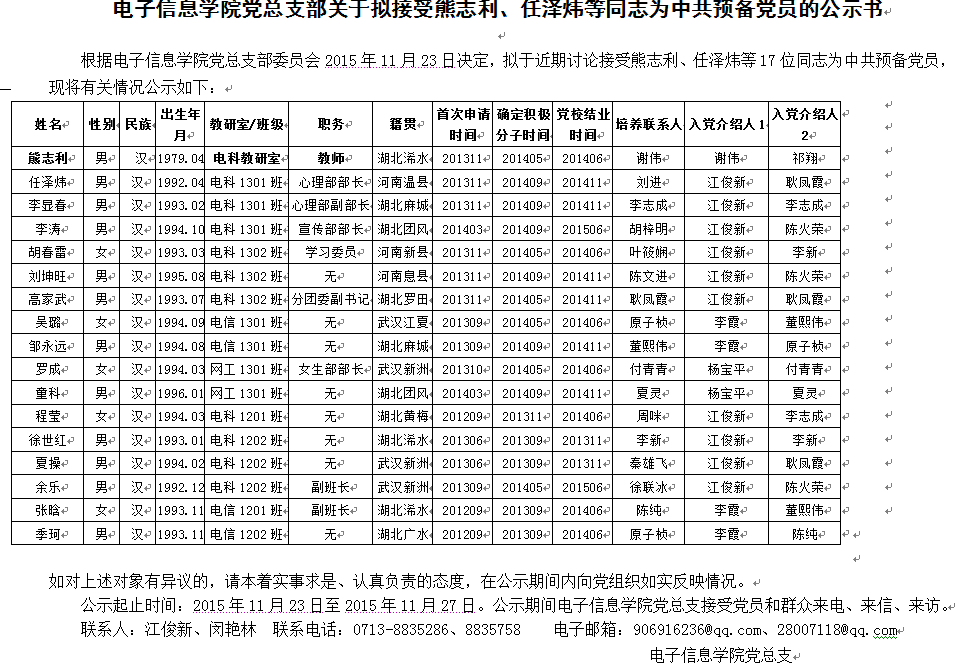 2015下半年党员发展公示
