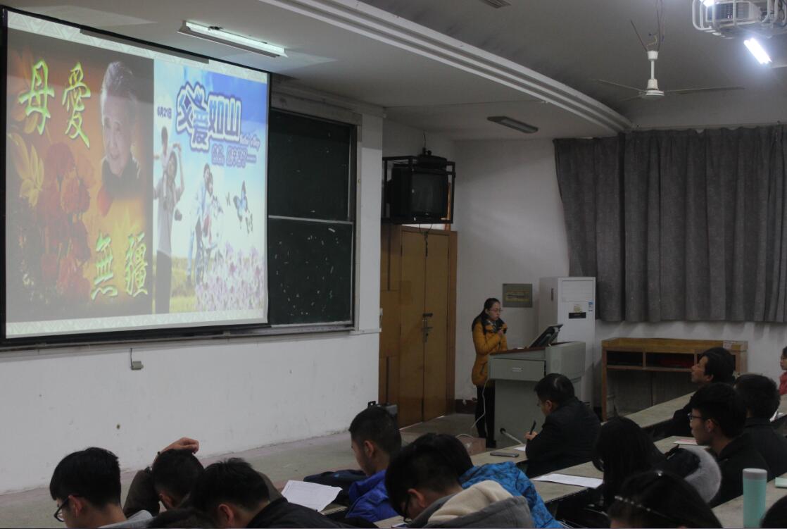 会议开始,严老师进行了“感恩教育”主题讲话,旨在使各位受助学生更加明确感恩的含义,感恩学校报答社会。她指出:无论是在家庭,学校还是在社会中,我们要怀有一颗感恩的心,知恩报恩。讲话过程中,严老师展示了一组贫困地区孩子们的日常生活写照,让在场的受助者们感触颇深。随后,来自电科1401班的叶玲同学和电信1602班的何创同学代表受助同学发言,深刻地表达了他们的感恩之情。