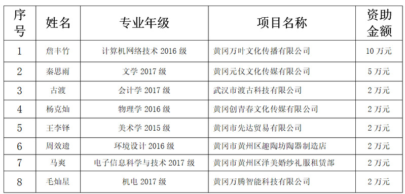 喜获支持!我校8名学生获2020年度湖北省大学生创业扶持项目