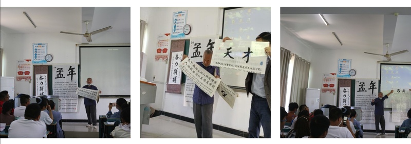 报告中,林老师展示了他写的老三篇——《天下最伟大的职业是母亲》、《天才》、《石头》,新三篇——《给予比接受更快乐》、《百善孝为先》、《道德高尚者长寿》,以及《母爱尚若水,父爱重如山》、《笔墨香自苦寒来》等优秀作品。每幅作品都隐藏着人生哲理,都有它的故事,林老师都能娓娓道来。