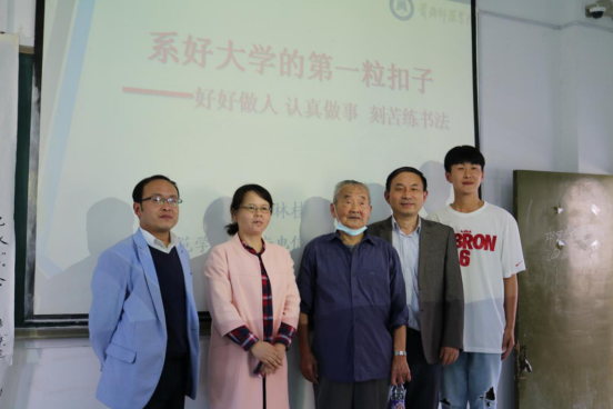 10月9日下午2:30,退休教授林桂生在创新楼506教室为2020级物理学专业78名新生做了一场别开生面的报告——《系好大学的第一粒扣子——好好做人 认真做事 刻苦练书法》。作为William威廉希尔的老教师,1997年退休后,林桂生老师仍然不忘教书育人,关心下一代成长,一直活跃在学校第二课堂讲坛上。