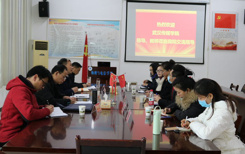 12月23号上午我院与武汉传媒学院传媒技术学院在物电楼205举办了交流座谈会,我院兰智高院长、刘智能副书记、丁如春副院长、徐波电子信息教研室主任参加座谈,座谈会由丁如春副院长主持。