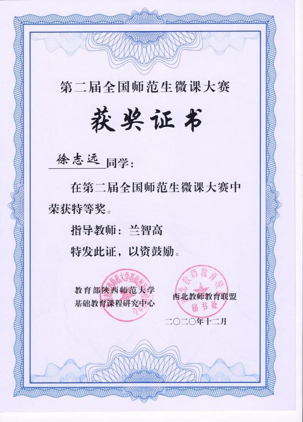 2020级教育硕士研究生物理领域徐志远获特等奖;物理领域赵鑫,数学领域陶昕保获一等奖;生物领域李颖、裴婧婷、杨杰、姚慧,数学领域丁创、刘瑾珲获二等奖;物理领域黄俊,生物领域尹英娟,语文领域韩怡、杨顺、张静获优秀奖。