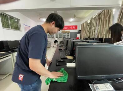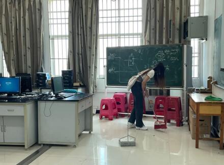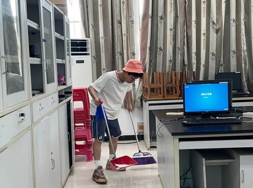 老师给同学们耐心讲解此次活动的注意事项后对到场的人员进行了合理分工,同学们2—3人自行组队后分别进入到了各自负责的实验室中去,自觉展开清扫,他们有的整理着各种仪器,有的擦拭着实验器材,有的清扫着实验室内不易清扫的间隙里等等。各成员分工明确,相互协作,使整个劳动过程高效有序。