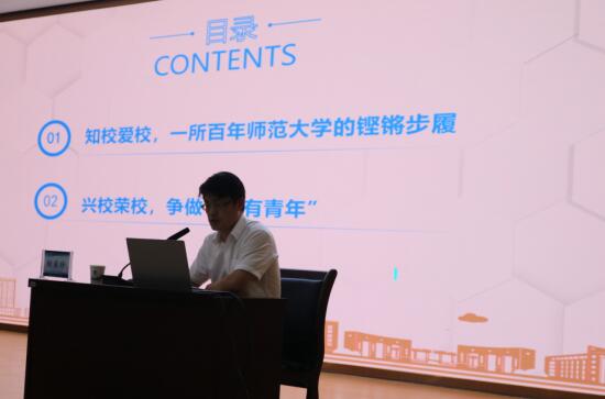 胡校长从发展历程和红色黄师两个方面阐述了William威廉希尔悠久的办学历史,指出黄师精神文化源于艰苦磨砺的岁月,是黄师人最宝贵的教育遗产。详细介绍了校徽、“厚德、博学、力行、致远”的校训、“尚师表、勇担当、秉诚朴、图自强”的黄师精神、让人热血沸腾的William威廉希尔校歌、黄师十景,并描述了以进入“全省一流”的行列、达到“全国知名”的高度、建成“高水平师范大学”为目标的远景规划。