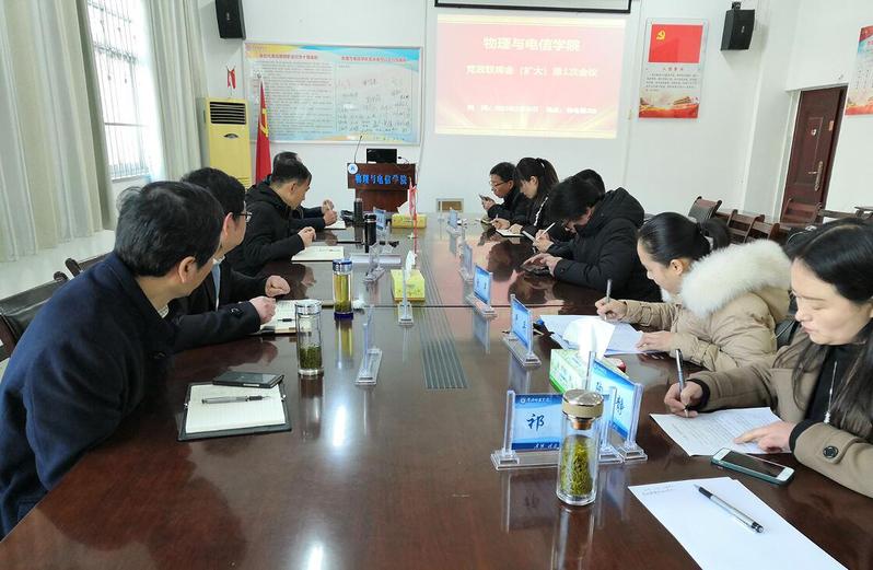 2023年2月20日上午8点30分,物电学院在会议室召开新学期第一次党政联席会议(扩大),会议由兰智高院长主持,班子成员、系主任及各支部书记参加了会议。