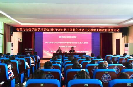 4月19日下午2点,物电学院在致远楼三楼会议室召开学习贯彻习近平新时代中国特色社会主义思想主题教育动员大会,学院党委书记杜杰支持会议并作动员讲话,校党委第六督导组组长余晚霞到会指导并讲话。