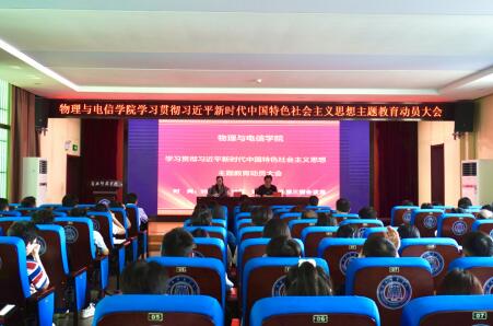 4月19日下午2点,物电学院在致远楼三楼会议室召开学习贯彻习近平新时代中国特色社会主义思想主题教育动员大会,学院党委书记杜杰支持会议并作动员讲话,校党委第六督导组组长余晚霞到会指导并讲话。