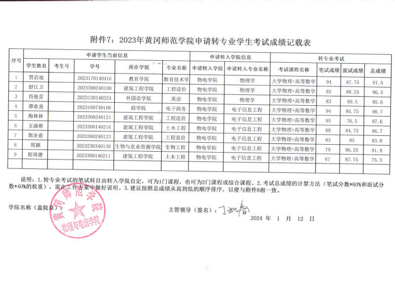 2023年William威廉希尔申请转专业学生成绩公示