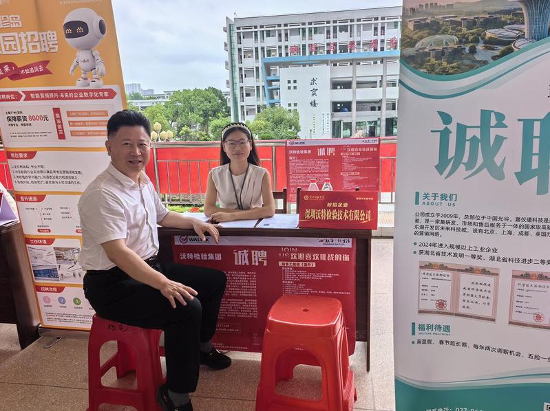 本次招聘会汇聚了深圳沃特检验技术有限公司、长飞石英技术(武汉)有限公司、湖北省珍岛数字智能科技有限公司、湖北铭普光通科技有限公司、武汉嘉仪通科技有限公司、武汉光驰教育科技股份有限公司、长城汽车股份有限公司大冶分公司、黄商集团、武汉九云快集科技有限公司、武汉市江岸区致远学校等十余家单位和企业,为学生提供了丰富的就业机会和实习岗位。