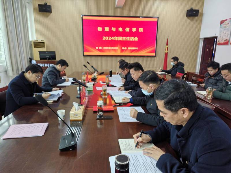 根据学校党委的统一部署,2025年2月20日上午,学院党委领导班子2024年度民主生活会在电信楼205会议室召开。会议主题是深入学习贯彻习近平新时代中国特色社会主义思想,全面贯彻落实习近平总书记考察湖北重要讲话精神,巩固深化党纪学习教育成果,综合发挥党的纪律教育约束、保障激励作用,为进一步全面深化改革、加快建成“全省一流、全国知名”高水平师范大学提供坚强纪律保证。