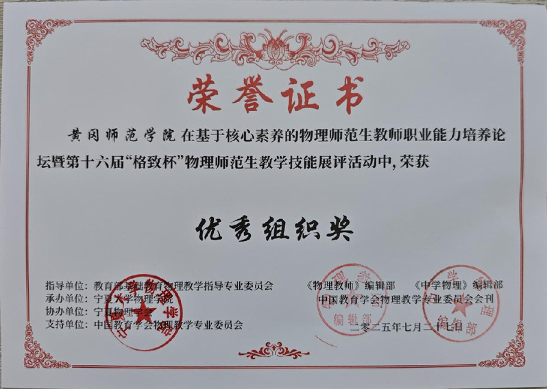 我院学子在第十六届“格致杯”物理师范生教学技能展评活动中斩获佳绩并获优秀组织奖