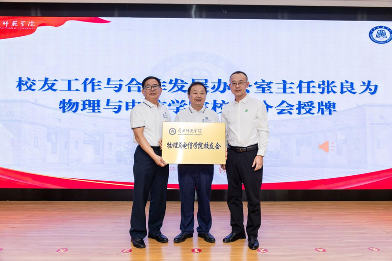 张良代表学校校友会为分会授牌,名誉会长陈训金、会长王性宇代表分会接牌。